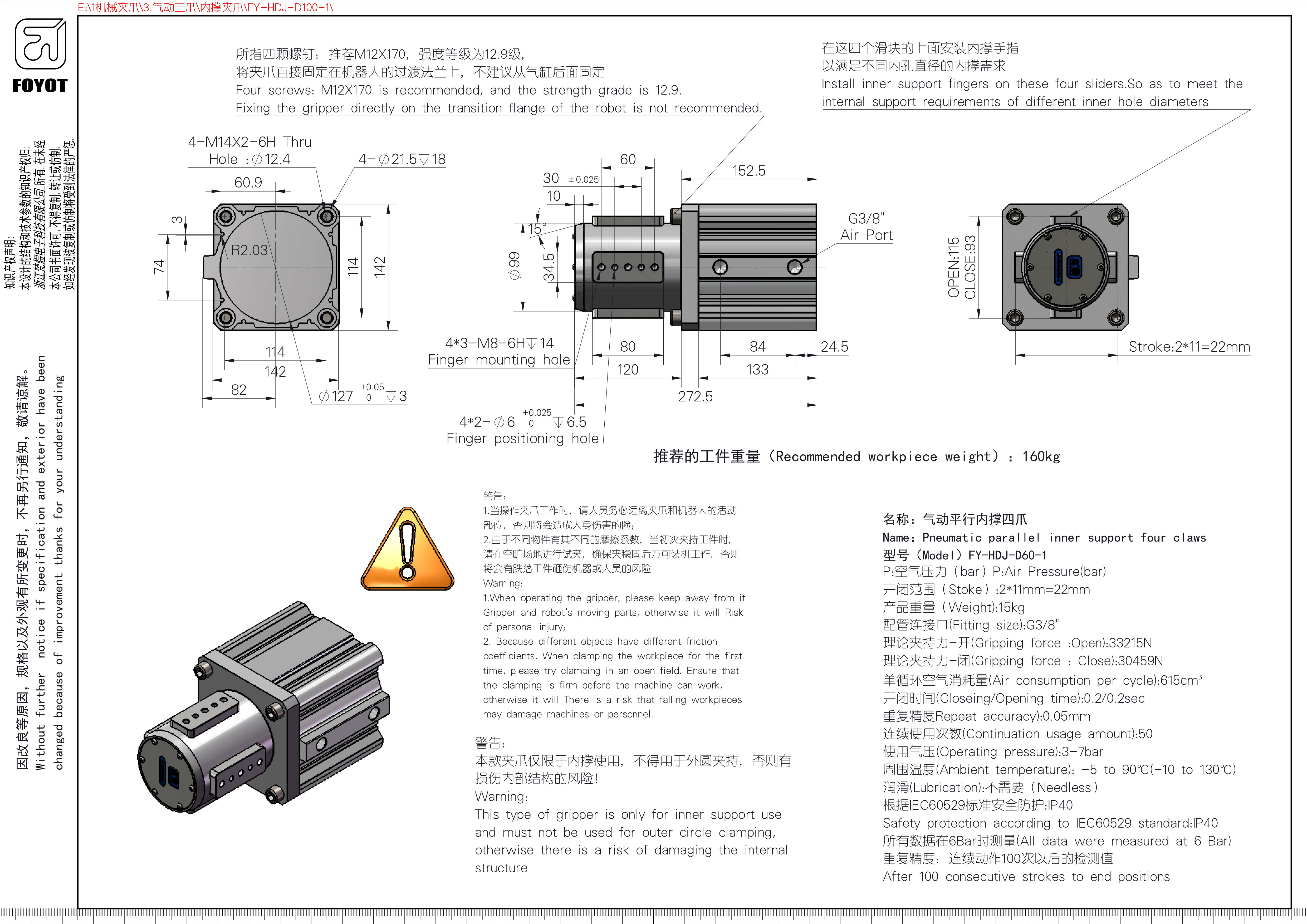 名稱:氣動平行內撐四爪